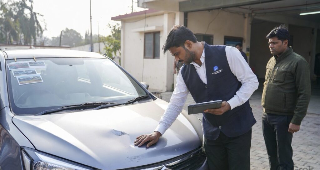Insurance company usually ek surveyor appoint karti hai jo accident vehicle inspect karta hai. Surveyor damage evaluate karta hai aur repair cost estimate karta hai.