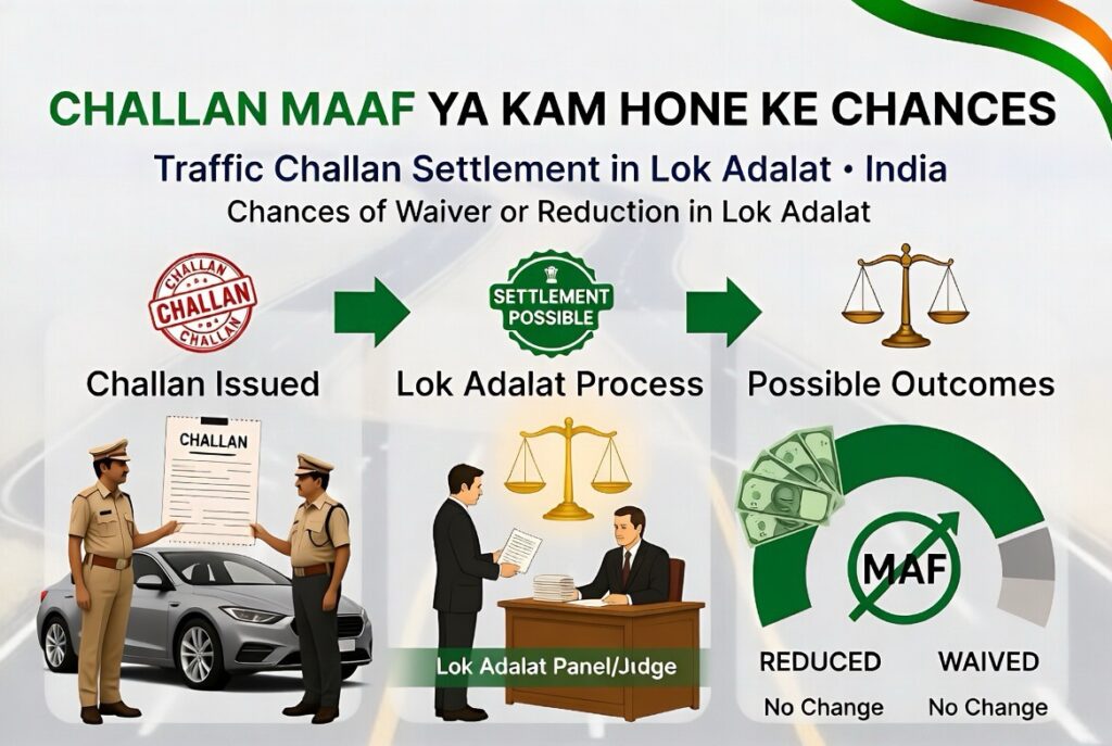 Traffic challans ko ignore karna ya delay karna aapke liye problem create kar sakta hai. Lok Adalat ek simple aur effective way hai fines ko kam ya maaf karwane ka. First-time offenders aur minor violations ke liye ye especially beneficial hai. Always ensure proper documents, polite behavior, aur timely submission.