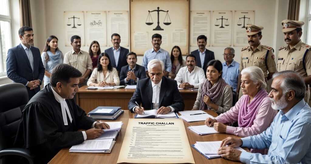 Lok Adalat ek government-backed fast-track dispute resolution system hai. Ye civil aur criminal cases, including traffic challans, ka solution provide karta hai without long court procedures. India me National Lok Adalat ke through har saal traffic challans settle kiye jate hain.